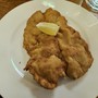 Ich und die anderen hatten eine sehr gute Kaspressknödelsuppe mit Riesenkaspressknödel (7.9), die vermutlich beste Fritattensuppe der letzen Jahre (5.9), einen vorzüglichen Leberkäse mit Senf, Pfefferoni, Kren und einer so herrlich saftigen Scheibe dunklen Brots (7.9), gute Spinatknödel mit brauner Butter und grünem Salat (16.9), ein schön gelatinöser, gebackener Kalbskopf mit Sauce tartare (14.9), grenzwertig salzige Schweinsschnitzel (Butterschmalz!) mit Erdäpfelvogerlsalat (18.9) und knusprig herausgebackene, wuchtige Fleischlaberl (2 Bälle) mit Erdäpfelpüree (17.9). Das Püree macht mich bis heute ratlos, weil es nicht in den Kanon der guten Gerichte dort passt. Eher ein Kleister, womöglich eine regionale Spezialität ...? Egal, im Steindl essen macht richtig Freude, das Trinken auch. Es gibt eine Weinkarte mit ausreichendem Angebot glasweise wie aus Flaschen, das Bier kommt vom Fass, sei es das Moretti oder das Gösser.