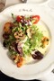 Salat mit Wildfang-Scampi und Basilikumbuttersauce (12.5): Die Basilikumbuttersauce umschmiegte den fein gezupften Salat und gab den glasig gegarten Scampi einen schönen Hintergrund, vor dem sie brillieren konnten. Ein frischer, wohltuender Einstieg.