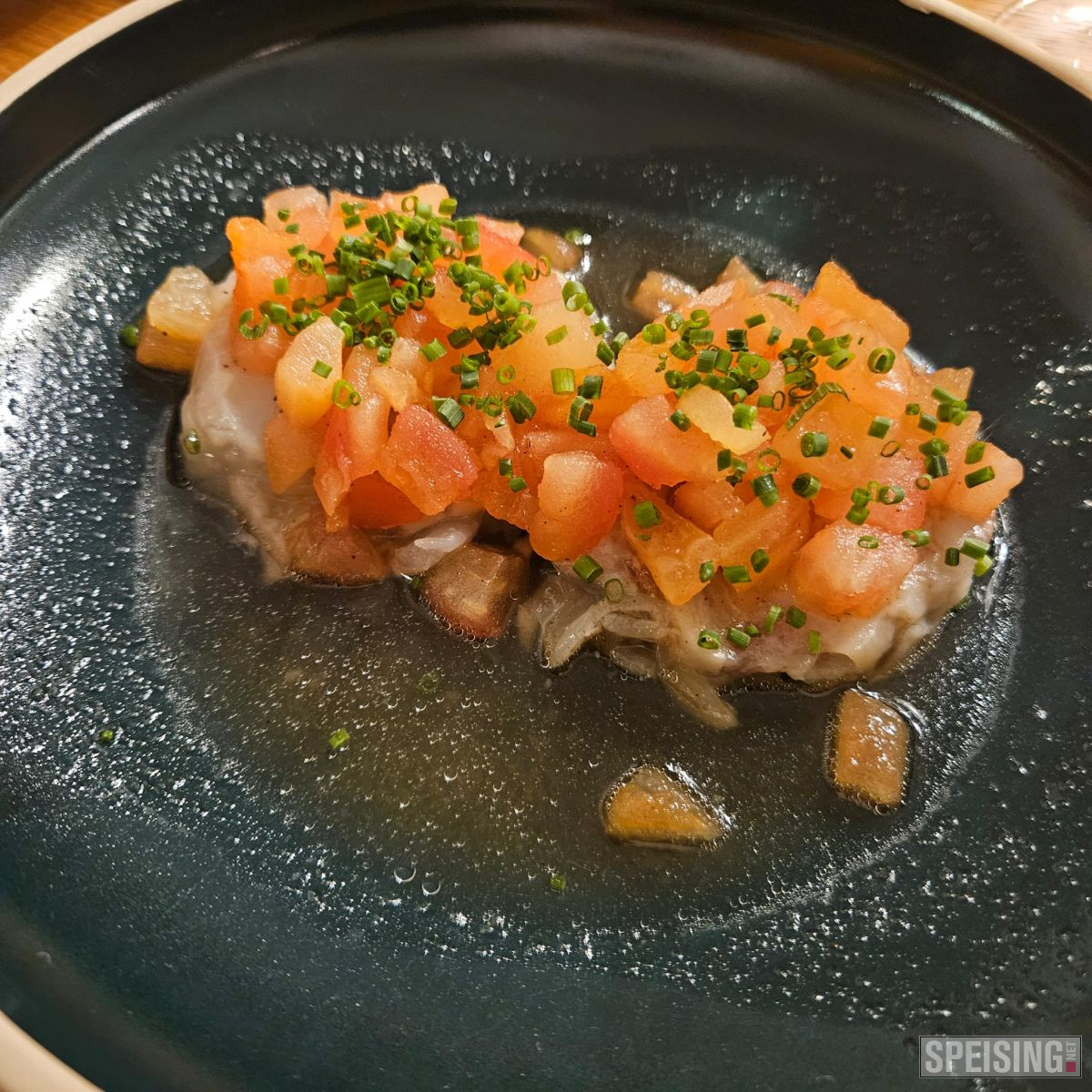 Kalbsfuss-Sulz unter Paradeiser-Vinaigrette