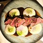 Getrockneter Oktopus mit pochiertem Ei, Kartoffelschaum und dehydriertem Dotter (19): Richtig geil. Zäh der Achtfüßer, mollig-schaumig der Rest, tiefes Aroma, plus nett angerichtet. Top.