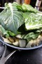 Und als vegetaler Abschluss kommen die dicken Mangoldblätschen über das Basilikum, die Zucchini, die Körndeln, das Gemüse.