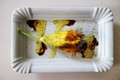 Ein Stück Sardelle in Öl, zwei Zitronenzestenstäbe, eine Blüte violetten Basilikums, ein Zweig Gewürzfenchel, zwei Fenchelblütendolden und ein wenig Burrata - so gefüllt sollte die Blüte dann geerntet, mit Olivenöl, Balsamico, Zitronensaft, rotem Kampot Pfeffer und Maldon-Salz am Gaumen explodieren. Tat sich auch - zur Nachahmung empfohlen!
